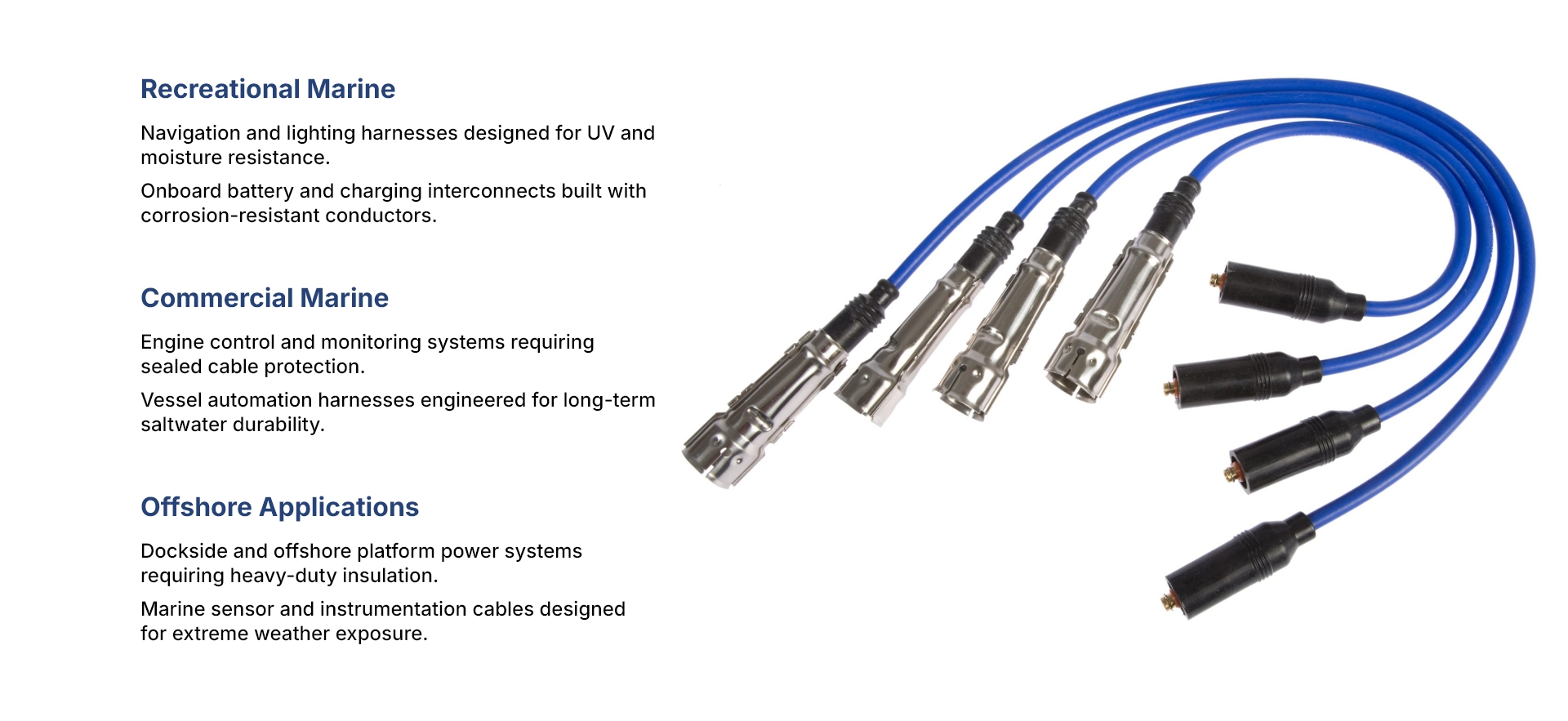 - Custom cable lengths for harnesses routed through decks, engine rooms, control panels, and enclosures