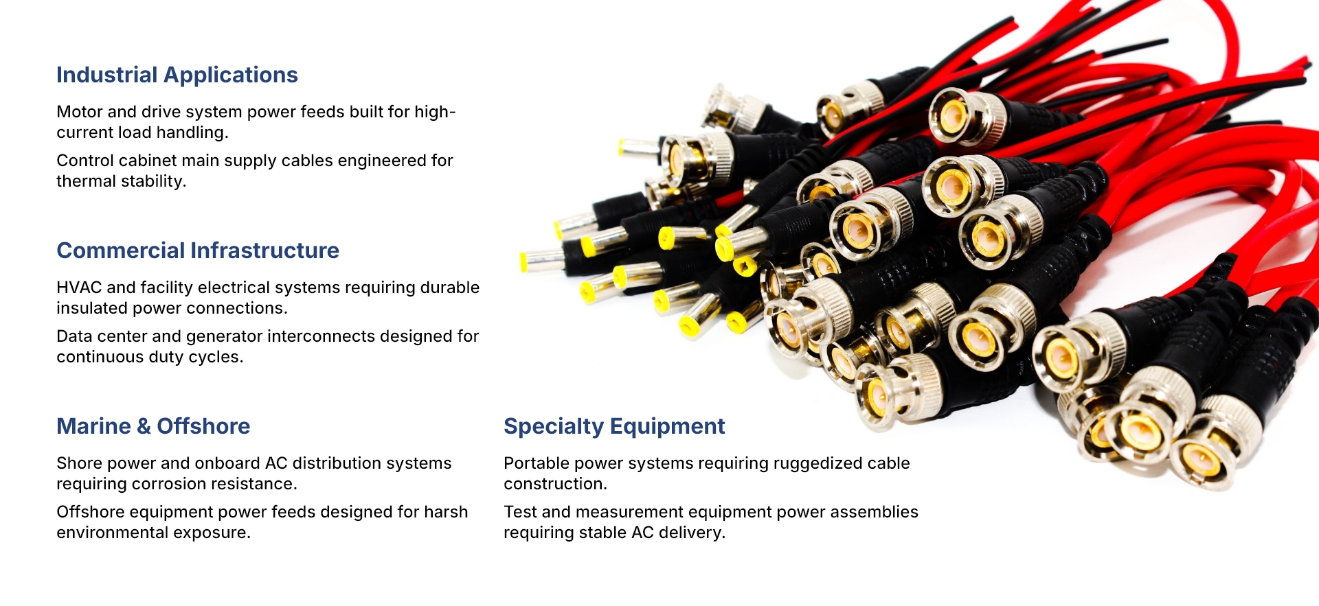 We manufacture custom power cable assemblies for a wide range of equipment and operating conditions, including: