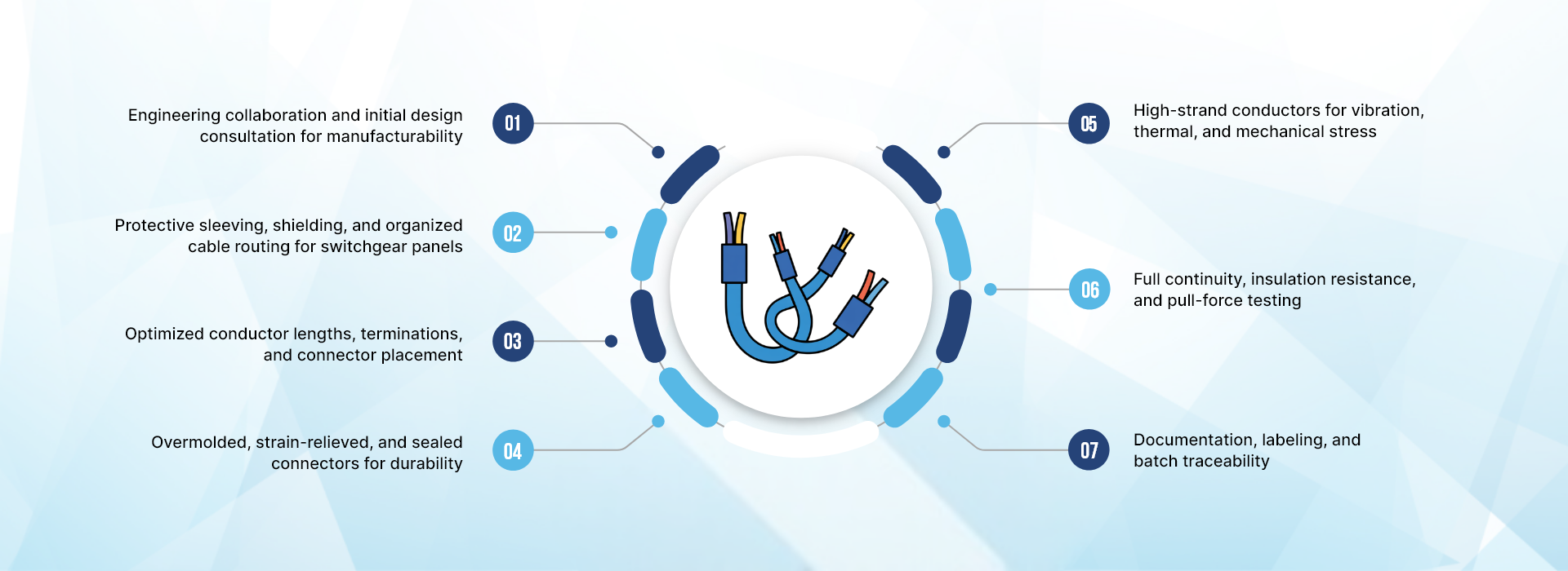 From initial design consultation to final delivery, Stantek provides engineering collaboration, manufacturability feedback, rapid prototyping, and flexible production to ensure consistent performance and long-term reliability in every switchgear wiring harness assembly.