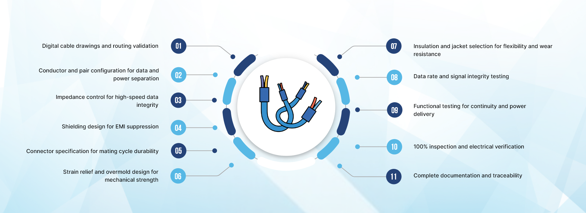 - Expert-Level ExperienceOur engineering and production teams ensure proper conductor sizing, shielding effectiveness, connector performance, and assembly consistency for dependable USB data transfer and power delivery.